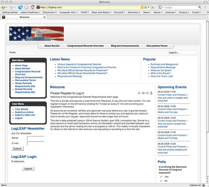 As the Congressional electronic records expert at the National Archives, I served as the primary requirements authority and system lead responsible for ensuring Legislative Branch records could be preserved and transferred in compliance with federal law.
